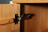 - Vier Topfbänder an jeder Tür und Verstärkungsleisten quer, Türdämpfer