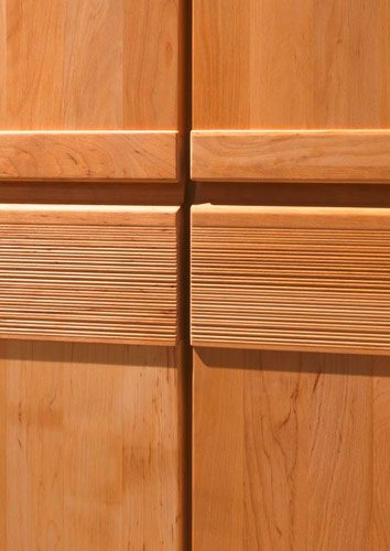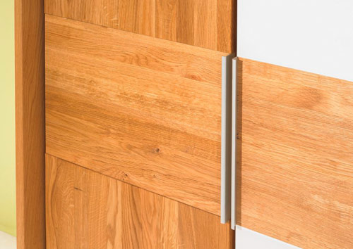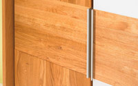 - 3 Kleiderschrankfronten: Grifflose Bauchbinde für Drehtüren, Geriffelte Bauchbinde für Drehtüren, Schiebetüren mit querlaufendem Holz